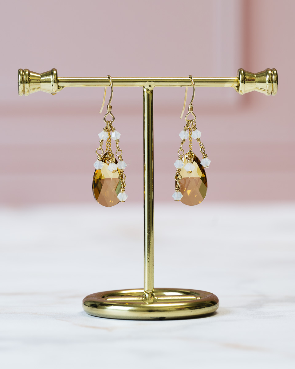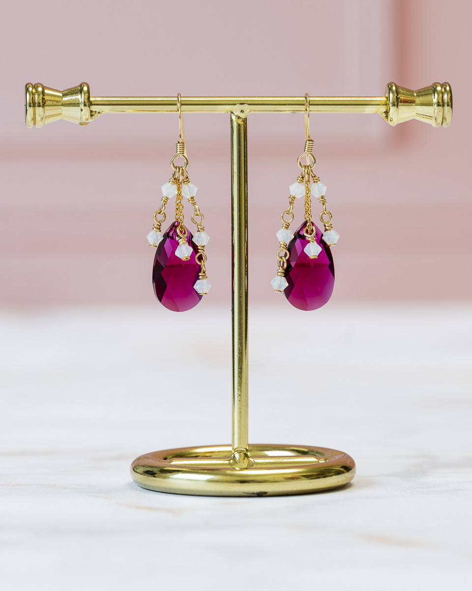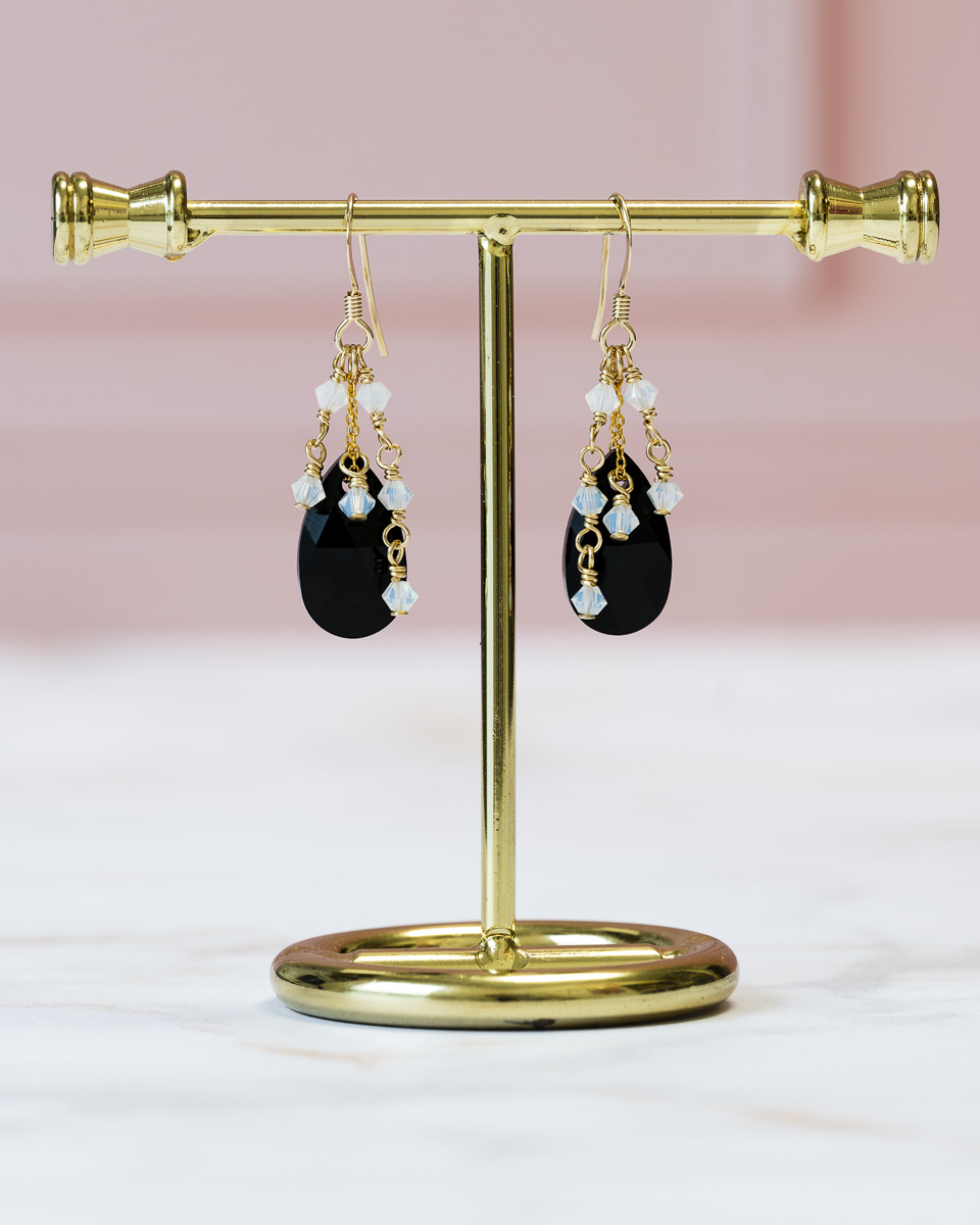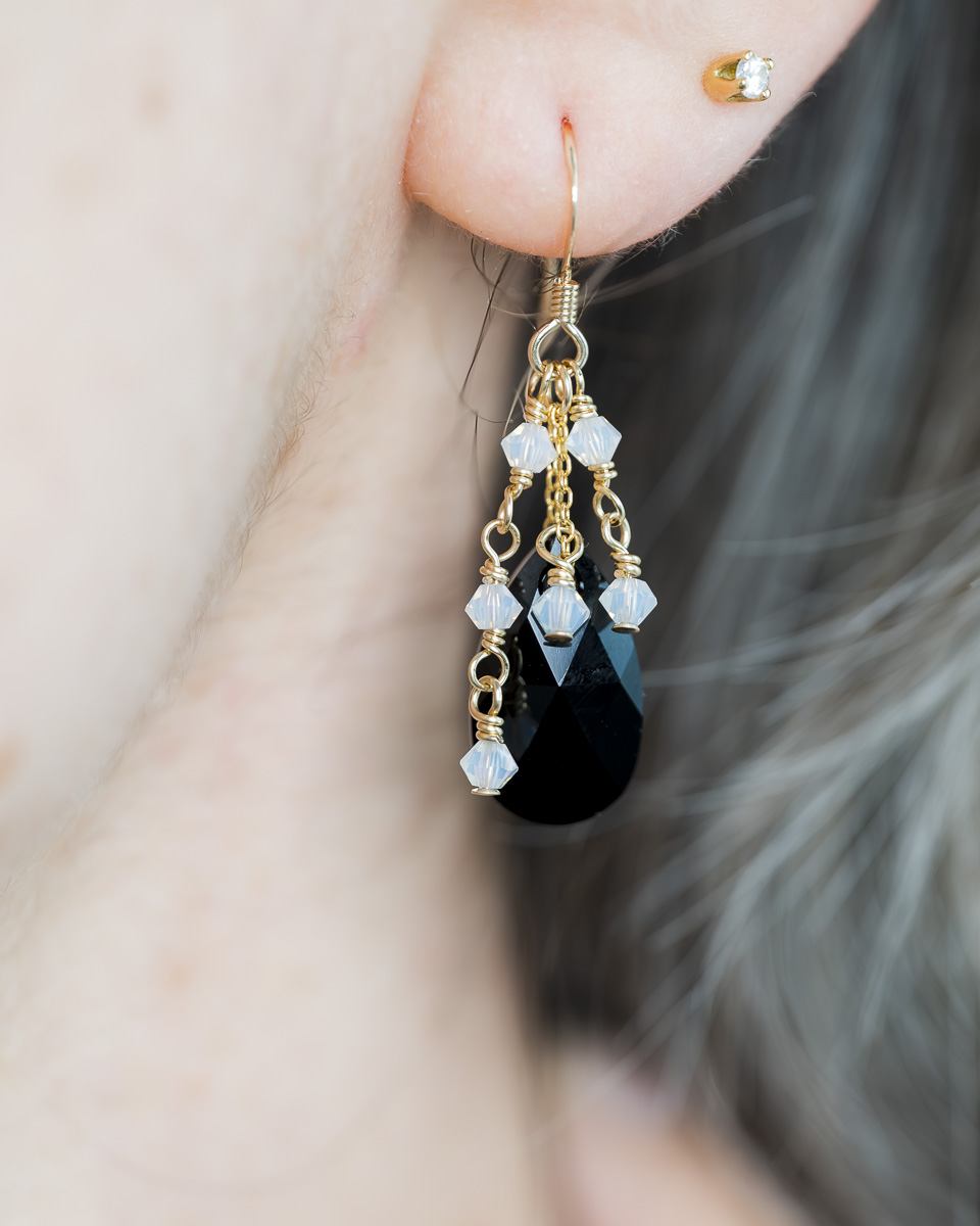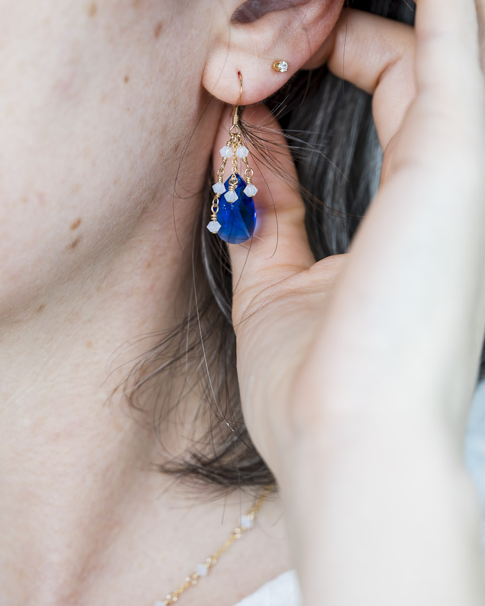 Les perles (et larmes) de cristal qui composent les boucles d’oreilles Prisma sont fabriquées en Autriche.