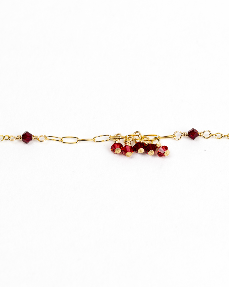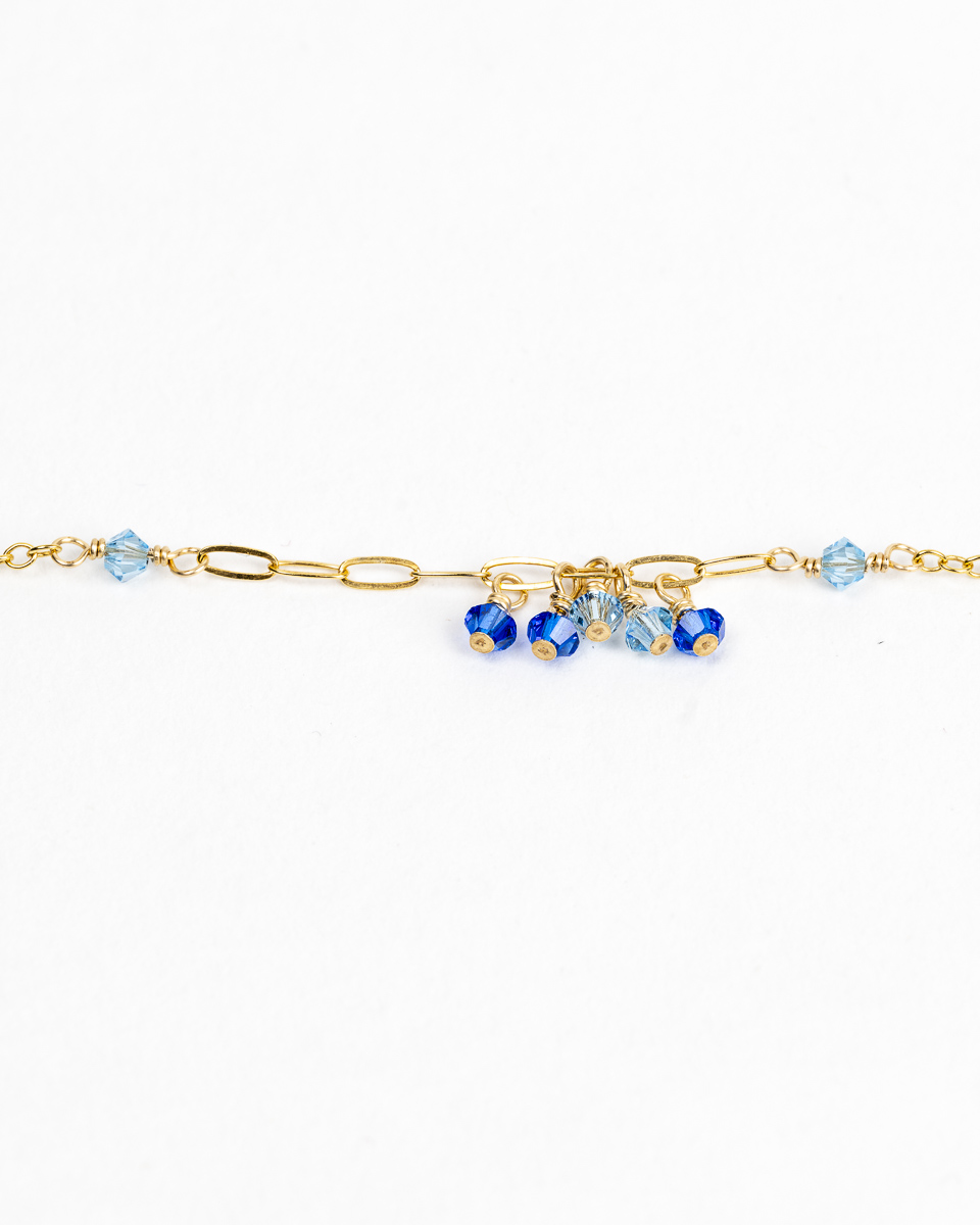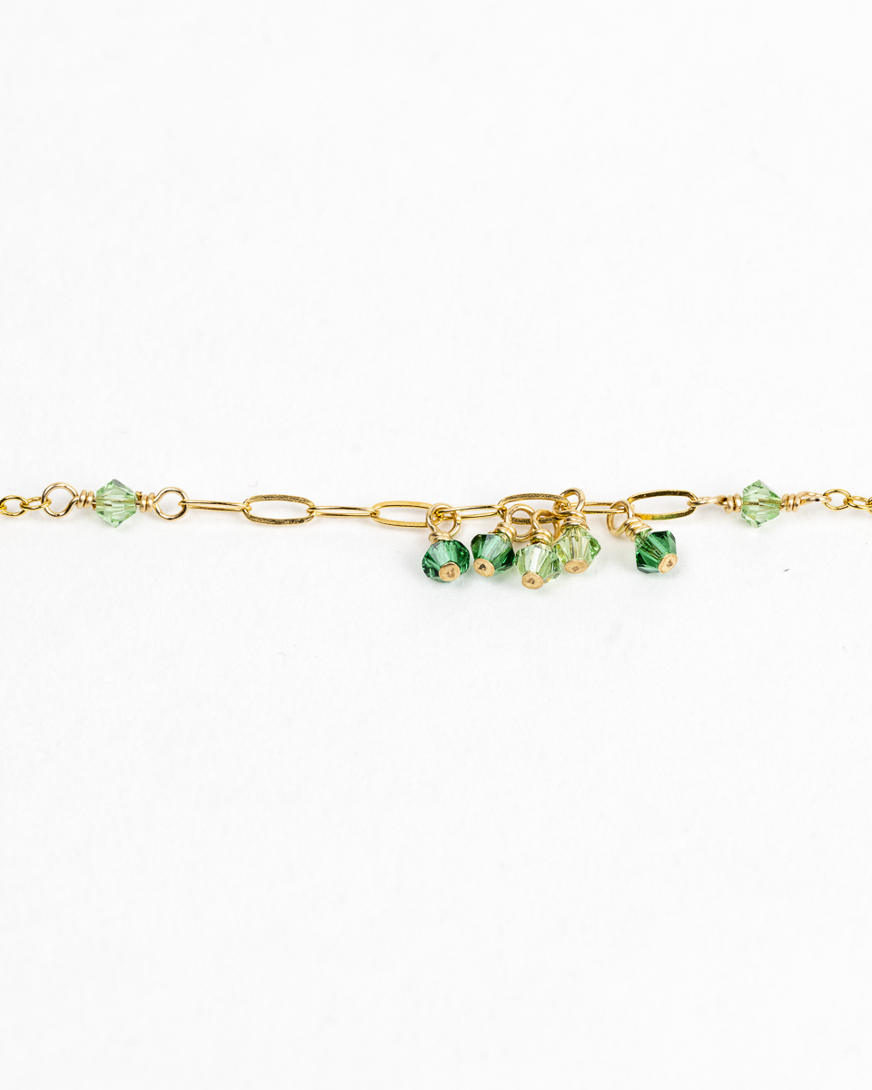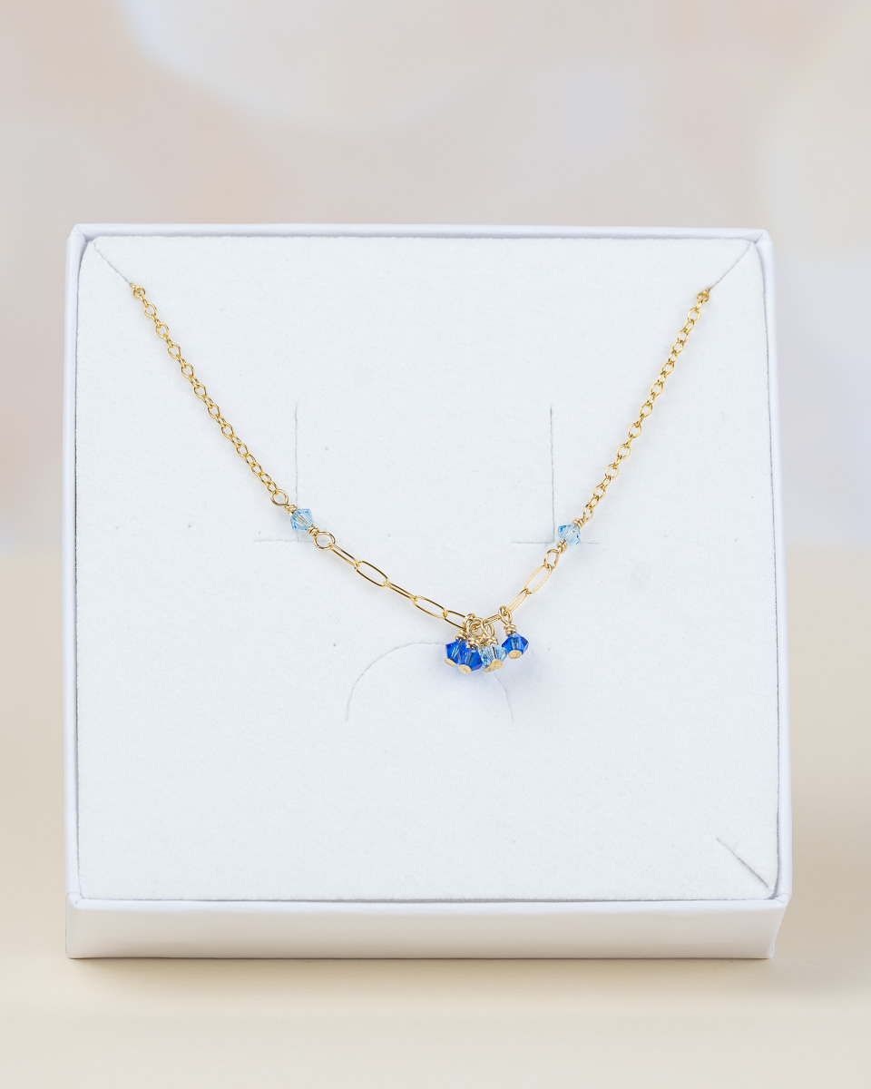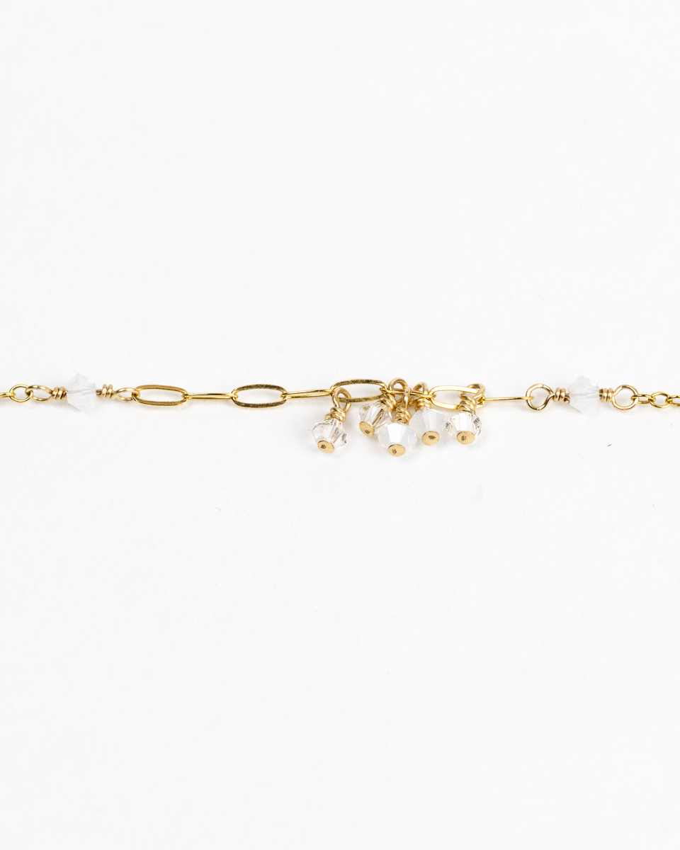 Le collier Dana est en or laminé 14 carats, respectueux de votre peau, et perles de cristal d’Autriche, délicates et scintillantes.