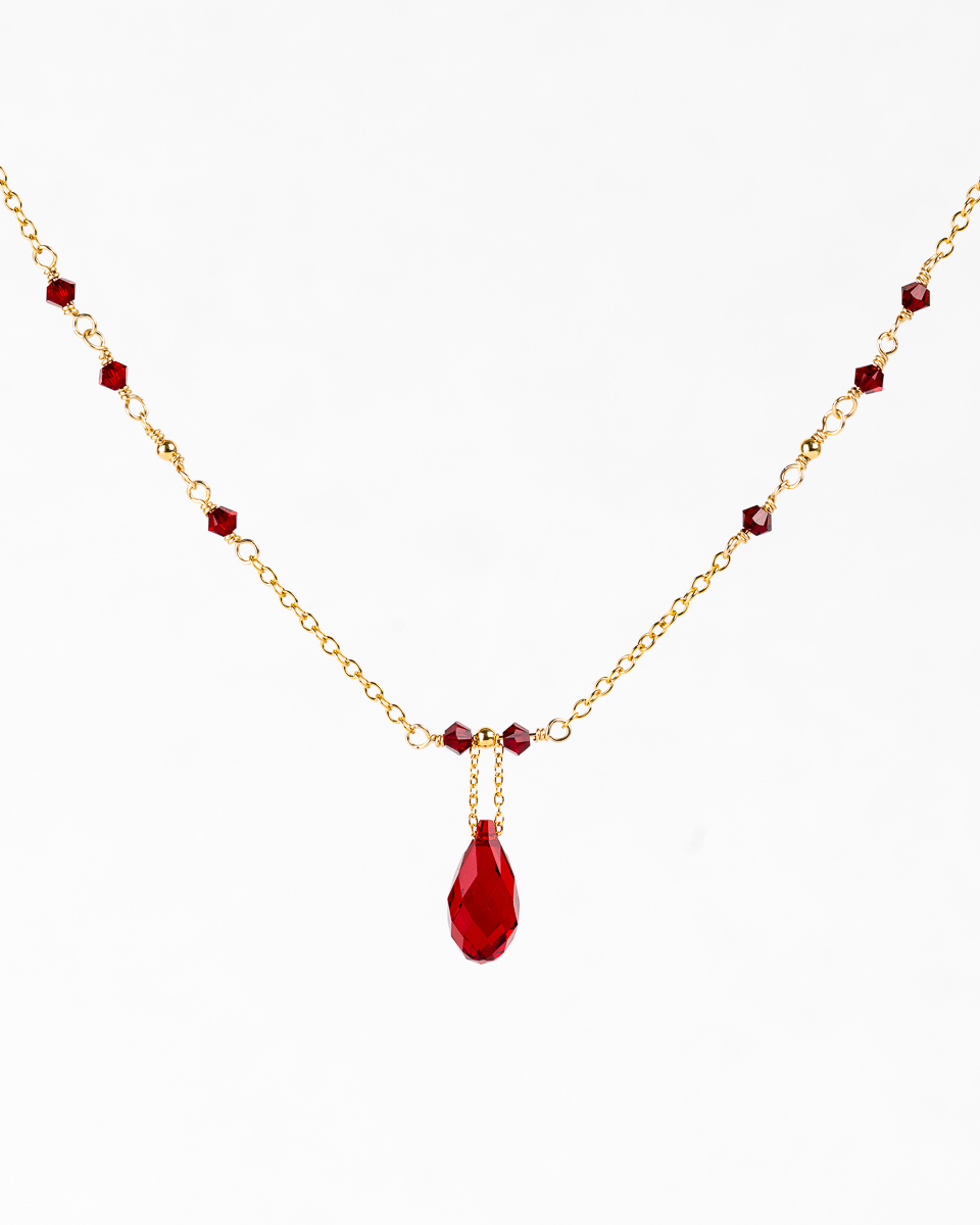 Le collier Erna se distingue par son pendant central de 2 cm, sublimé par une goutte de cristal de 1,1 cm qui révèle toute sa beauté au contact de la lumière. Cette pièce courte, ajustable de 40 à 45 cm, apporte de l’élégance à votre décolleté.