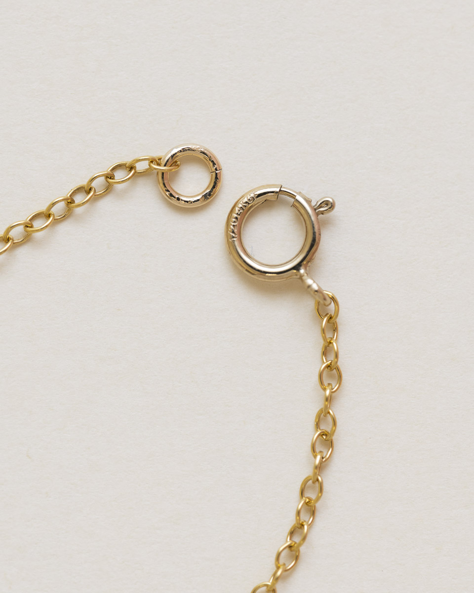 Le collier Prisma est confectionné à la commande à la longueur que vous aurez choisie (de 38 à 48 cm). Une chaînette d’extension optionnelle de 5 cm peut également y être ajoutée.